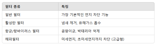 특히 미세먼지가 많은 봄철이나, 황사가 심한 지역에서는 더욱 중요한 부품입니다.