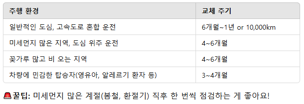 하지만 실제 교체 주기는 운전 환경에 따라 달라질 수 있어요.